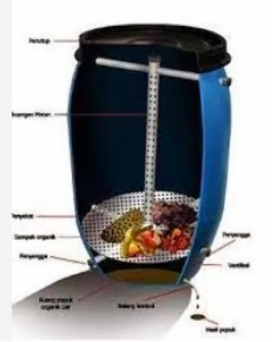 Kelengkapan Tong, tutup atas, tutup samping, saringan, paralon, kran, selang. Tutup samping gunanya untuk mengambil ( panen ). Kompos di bagian bawah ( sampah organik yg  masuk lebih awal ) yg sudah jadi kompos padat